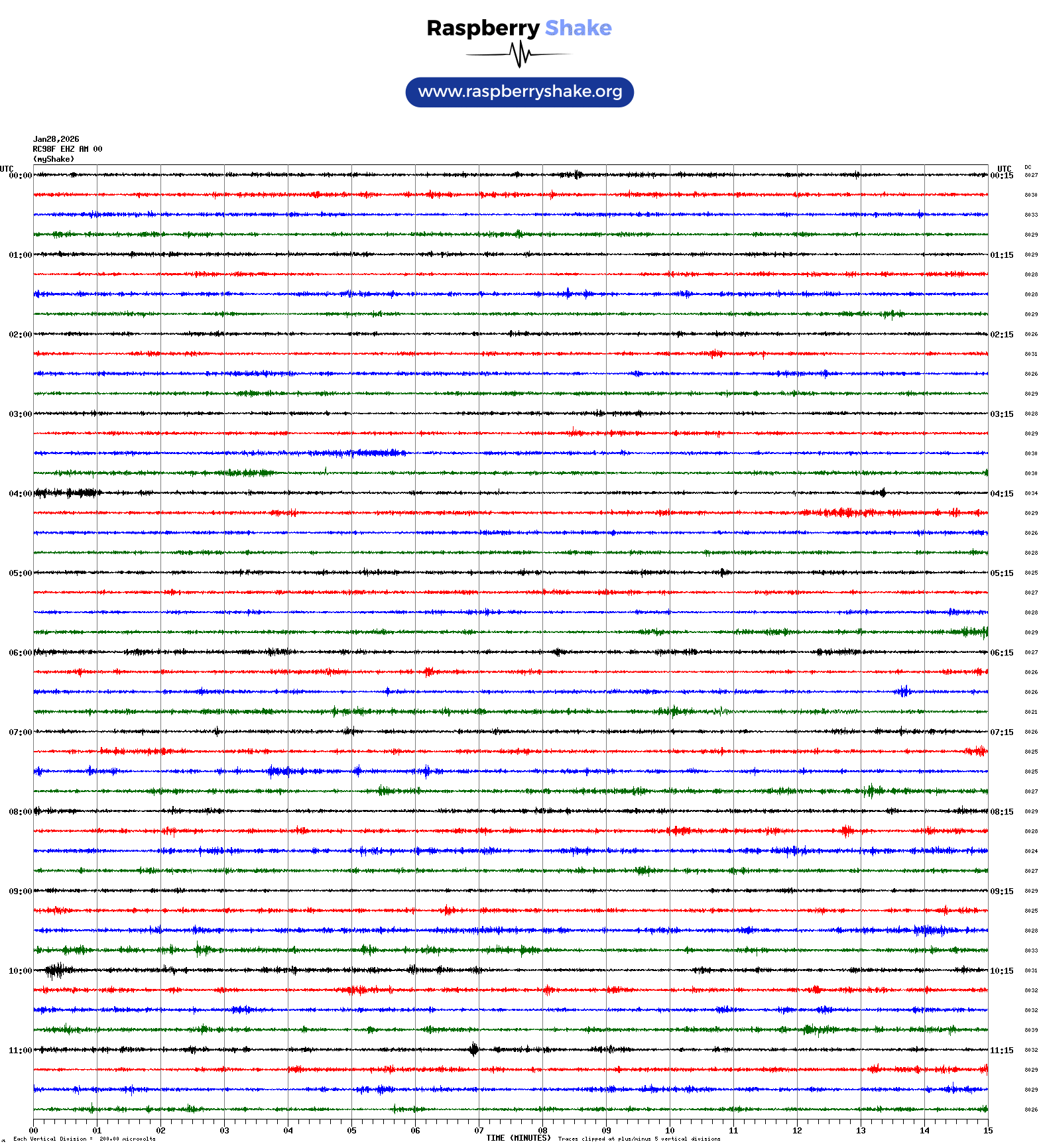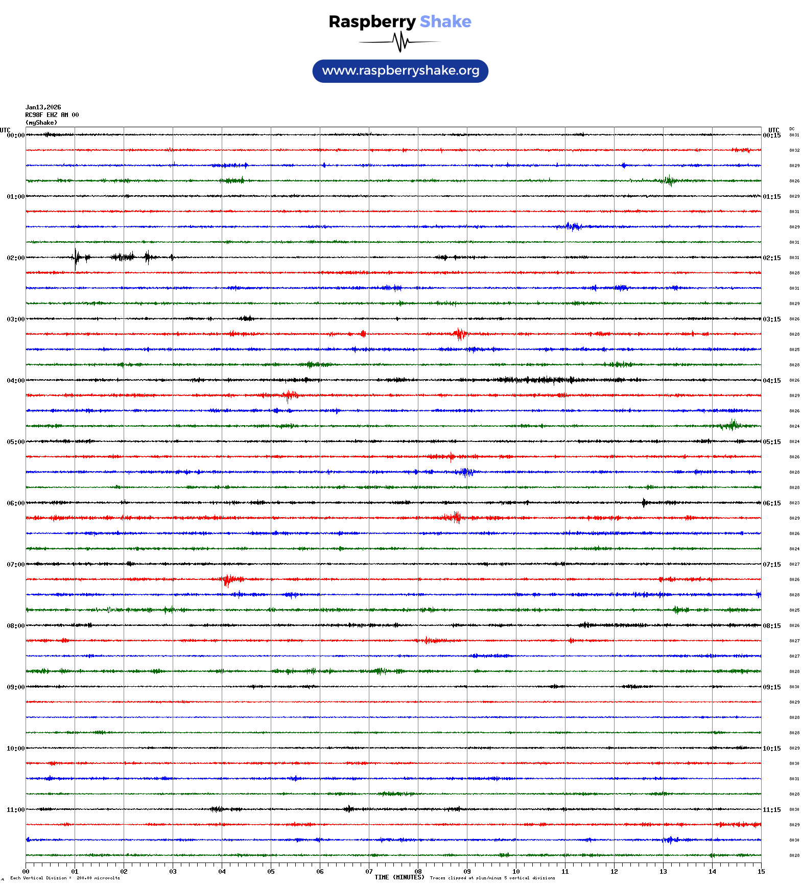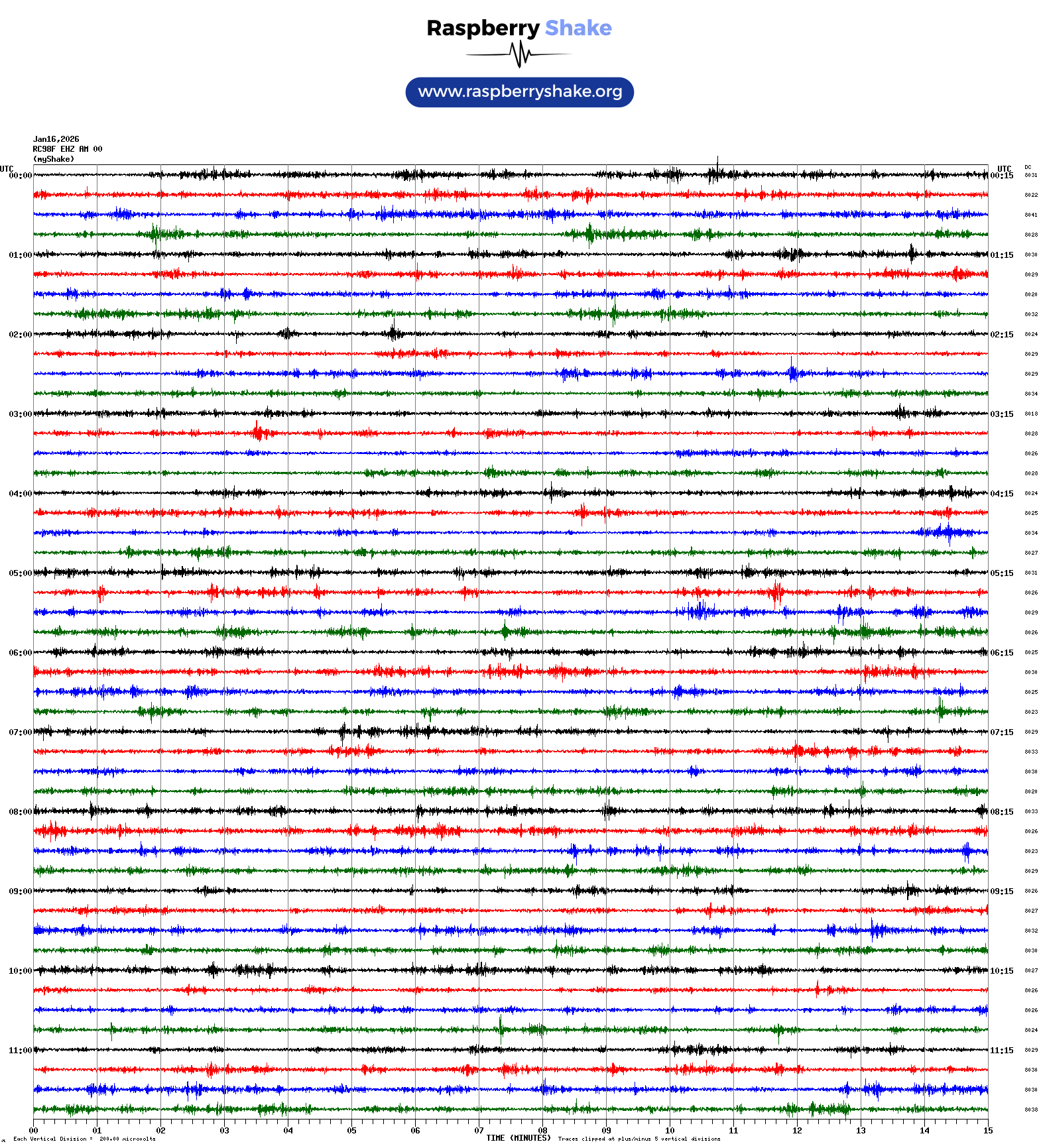 The Helicorder and swarm images below are from this Raspberry Shake unit.